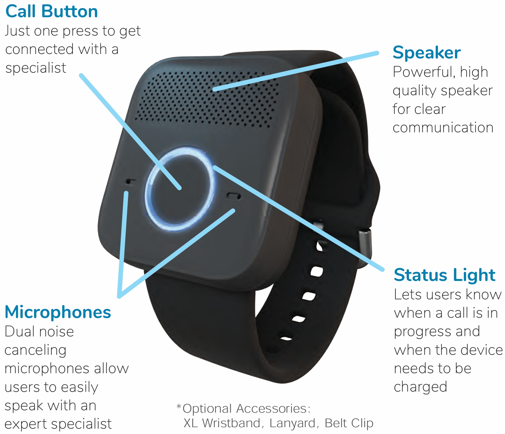 Belle W is a lightweight, wrist-worn mobile personal emergency response system that offers customers confidence to live life on their terms. They can easily get help at home or away from home with the press of a button, across the US. Belle W is certified on the AT&T 4G LTE network. Belle W connects users to expert operators at a UL-Listed, TMA Five Diamond Certified central station 24/7 via built-in two-way voice.